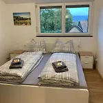 Sonnige Dg-Fewo Im Neubau In Zentraler Lage lägenhet erbjuder ett trevligt boende i Eimeldingen för upp till 5 gäster. Vitra Desighmuseum ligger 10 minuters bilresa bort och Gemeindehaus ligger 5 minuters promenad från boendet.